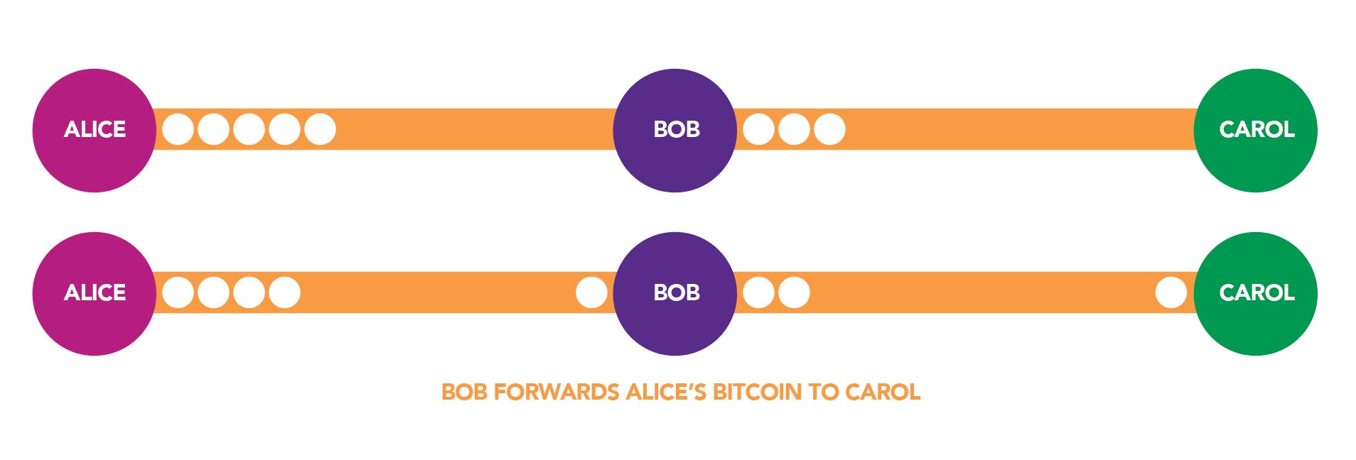 - Intent: Alice wishes to send Carol 0.1 BTC. However, Alice doesn't have a direct channel with Carol. Instead of establishing a new channel (which would be resource-intensive), Alice can utilize Bob as an intermediary to route her payment.