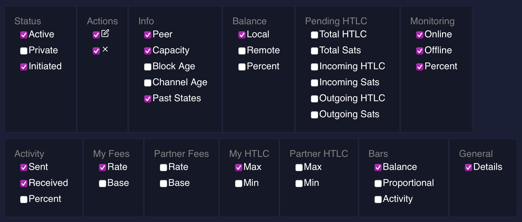 - Activity: A visual representation of the transaction activity on this channel. The higher the number the more active the channel and thus likely generates more earnings for you through routing.