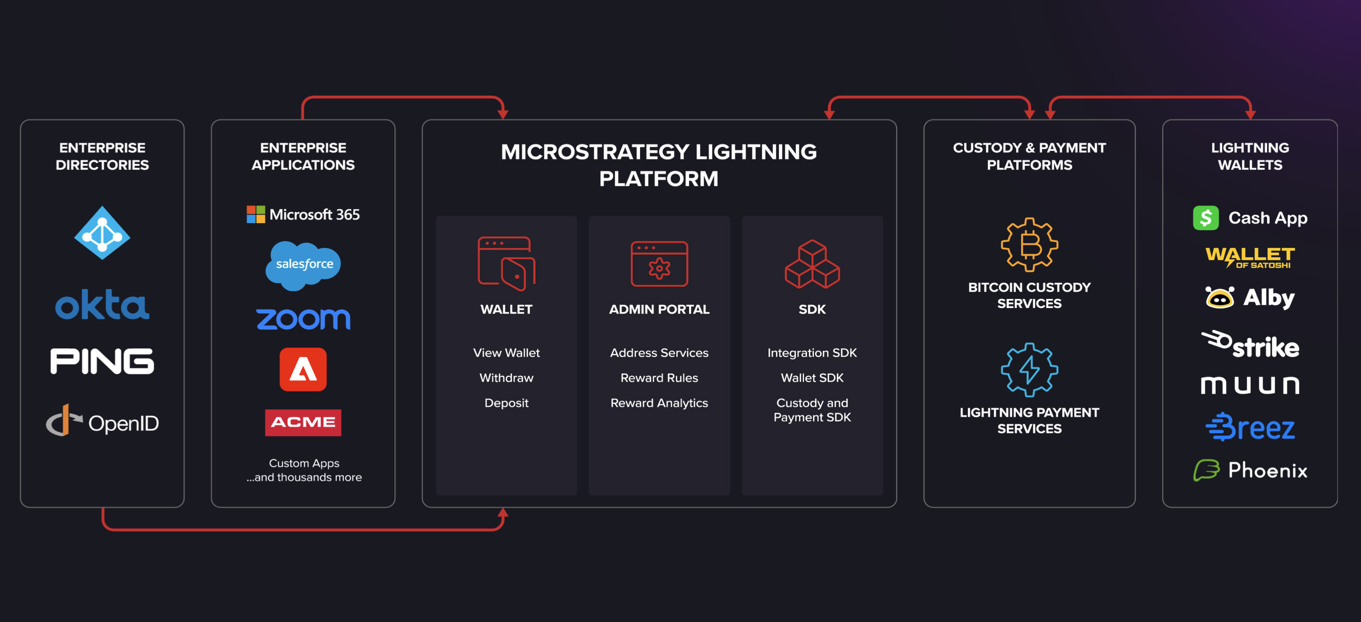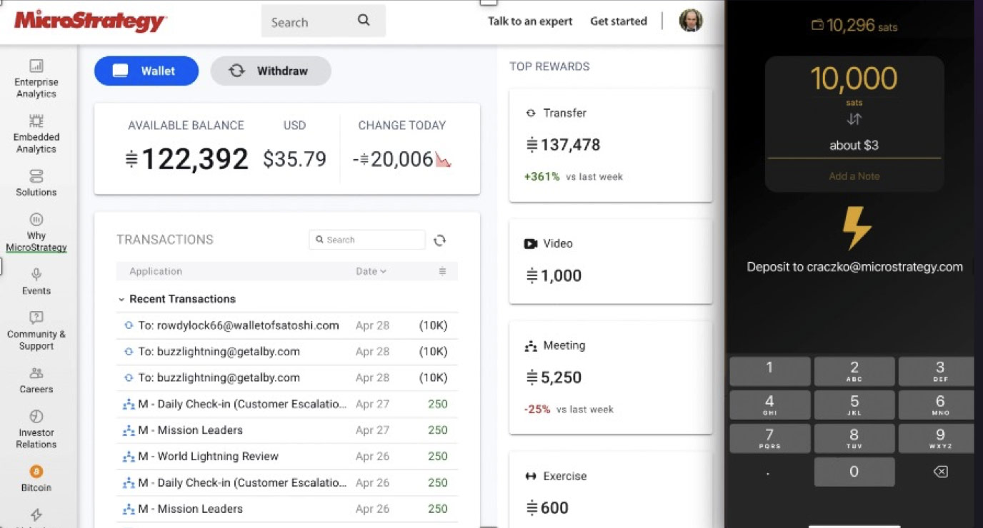 MicroStrategy's Lightning Rewards program incentivizes customer and employee actions using Bitcoin rewards. This innovative approach leverages Bitcoin and the Lightning Network, offering a unique way to engage with stakeholders. The program includes an administrative portal for easy management and seamlessly integrates with enterprise systems like Salesforce and Zoom. This flexibility makes it suitable for various business applications. Moreover, the platform provides analytics to track the impact of the rewards program, ensuring businesses can measure and optimize their strategies effectively.