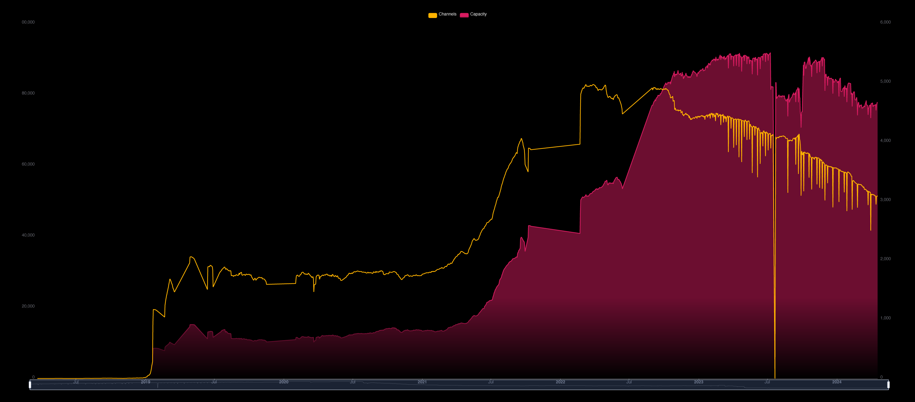 The statistics reflect only publicly visible nodes and channels. Anecdotally, we know that many channels are opened privately. Private channels offer advantages such as enhanced privacy and avoidance of channel "draining" through rebalancing, which is crucial for large companies needing reliable capacity on one side to serve customers. However, receiving payments in private channels can be cumbersome, requiring hints in the invoice. The private segment of the Lightning Network could be expanding rapidly, but this growth is not reflected in public statistics.