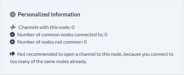 When viewing a node's profile that has no public channels, the Recommendation text to open a channel or not, should be reworded. The last half of the sentence "connect to too many of the same nodes" is the culprit.