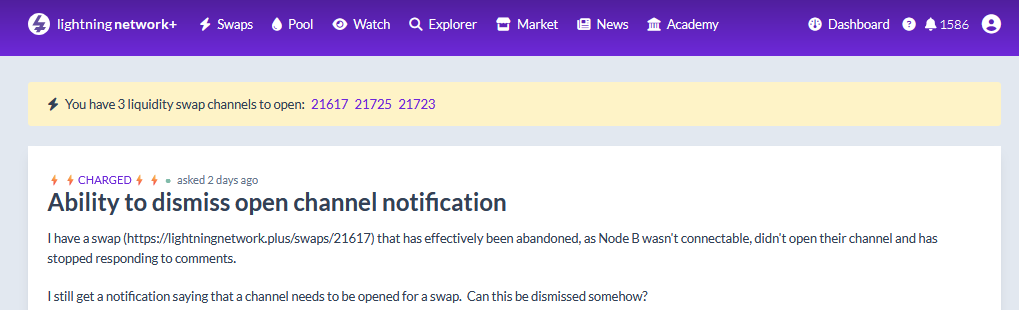 I still get a notification saying that a channel needs to be opened for a swap. Can this be dismissed somehow?